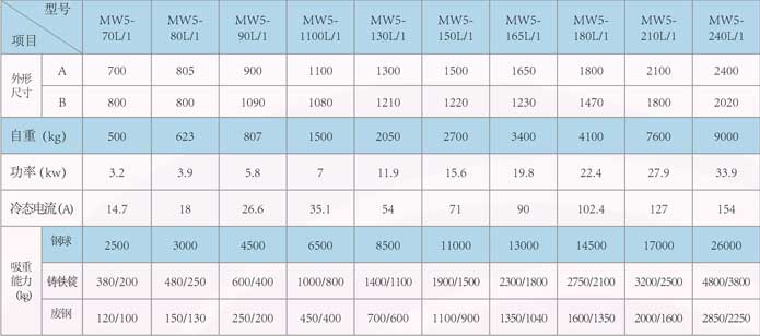 注:潛水型起重電磁鐵技術(shù)參數(shù)與常溫型電磁鐵相同